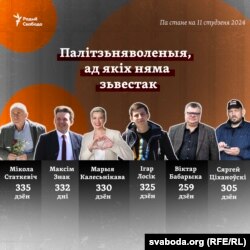 Мікалай Статкевіч 335 дзён у невядомасьці, Максім Знак — 332, Марыя Калесьнікава — 330, Ігар Лосік — 325. На скаргі сваякоў з калёній прыходзяць фармальныя адказы, што «ў перапісцы зьняволеныя не абмежаваныя».