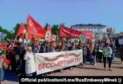 Амбасада Расеі ў Беларусі публікуе фота і відэа шэсьцяў «Несьмяротнага палка» ў абласных гарадах, пра шэсьце ў Менску не паведамляецца.