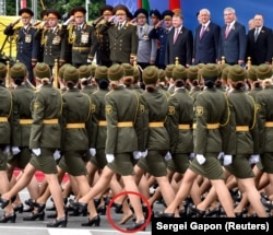 Зноў дэманстрацыя вайсковай тэхнікі. Упершыню публічна зьявіўся малодшы сын Лукашэнкі Мікалай, чатырохгадовы, у вайсковай форме і пілётцы.