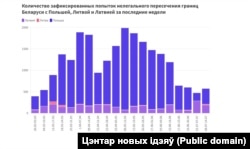 Да таго ж тэндэнцыі ў дынаміцы колькасьці спробаў нелегальна трапіць у ЭЗ з тэрыторыі Беларусі перасталі выклікаць аптымізм. Мінулы тыдзень быў першым за апошнія 2 месяцы, калі ўстойлівы трэнд на зьніжэньне нападаў на межы зламаўся. Калі ў першы тыдзень ліпеня такіх спробаў было крыху больш за 470, то на мінулым тыдні ўжо больш за 570 — гэта рост прыкладна на 20%.
