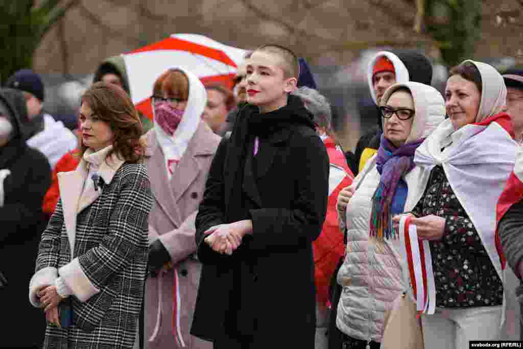 Сьвятлана Ціханоўская на мітынгу сказала, што вельмі ганарыцца бел-чырвона-белым сьцягам, які стаў сымбалем незалежнасьці і няскоранасьці беларусаў. Яна згадала, як 107 гадоў таму была абвешчаная незалежнасьць Беларусі ў Менску і тады ж афіцыйна зьявіўся яе сьцяг, зь якім доўга змагаліся «сталіністы і іншыя ворагі беларушчыны».
