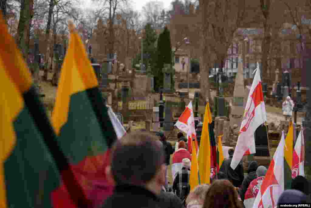 Беларусы запалілі зьнічы і ўсклалі кветкі на могілках Росы ў Вільні да помнікаў братам Луцкевічам і ў капліцы Кастуся Каліноўскага.