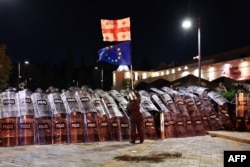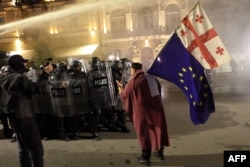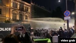 У Тбілісі пратэстоўцы штурмавалі прэзыдэнцкі палац, сілавікі ўжылі сьлёзацечны газ і вадамёты. Фота
