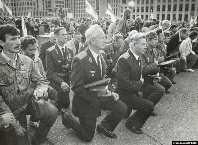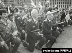 Генадзь Банкевіч (у цэнтры) дае прысягу служыць Беларусі. 8 верасьня 1992.