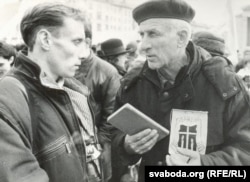 Генадзь Банкевіч справа за Зянонам Пазьняком. 20 жніўня 1991 г.