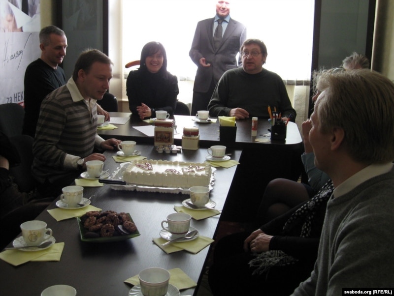 «Мы зараз, нас дзесяць чалавек, хочам самі вырашыць, што нам рабіць з-за гэтага артыкула: радавацца ад шчасьця ці аблівацца сьлязьмі? І другое пытаньне — гэта салідарнасьць ня толькі паміж намі, але і з тымі 60 чалавекамі, якія ідуць паводле крымінальнага артыкула, і з тымі 700, якія атрымалі адміністрацыйнае пакараньне. І вось пад гарбату і торцік мы гэтую тэму хочам абмеркаваць».