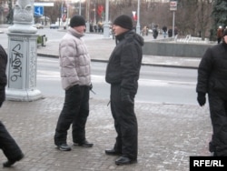 У дварах дамоў на праспэкце Незалежнасьці паўсюль супрацоўнікі спэцслужбаў у цывільным, як беларускія, так і расейскія.