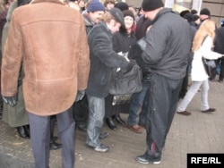 У дварах дамоў на праспэкце Незалежнасьці паўсюль супрацоўнікі спэцслужбаў у цывільным.