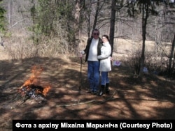 Разам з жонкай ТацьцянайМарыніч: “У нас з Тацьцянай быў грамадзянскі шлюб, які мы плянавалі ўзаконіць. Канечне, не ў турме. Да суду, пакуль я знаходзіўся ў “амэрыканцы”, Тацяна, як грамадзянская жонка, мела права на спатканьні і перадачы. У калёніі правілы іншыя. Там без штампа ў пашпарце на доўгатэрміновае спатканьне разьлічваць немагчыма. Але раптам у мяне здарыўся інсульт, і ўзьнікла пагроза, што я надоўга застануся без падтрымкі. Марудзіць было нельга і мы вырашылі зарэгістравацца.