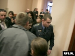 Зьмітра Хведарука вядуць у кабінэт судзьдзі