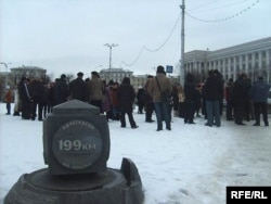Плошчу Леніна ў Магілёве два дні не прыбіралі ад сьнегу, і ўдзельнікам мітынгу давялося гуртавацца каля праезнай часткі.