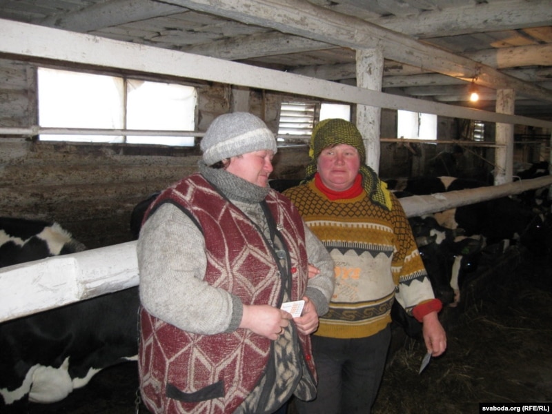 Пачуўшы пра прыезд карэспандэнта «Свабоды», да мяне падбягае 35-гадовая бляндынка, што працуе апэратарам машыннага даеньня на фэрме «Райаграсэрвісу» — спадарыня Любоў Анташкевіч. Тры гады, як яе зь сям’ёй усялілі ў калгасную хату без вакон.