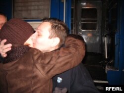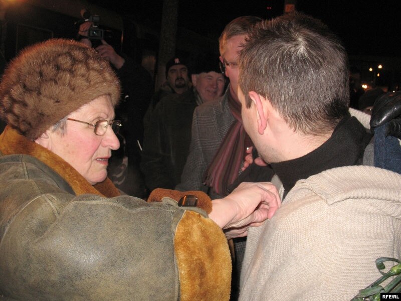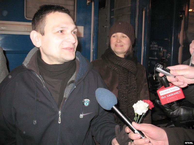 На вакзале яго сустракалі маці, жонка, актывісты апазыцыі, сябры і журналісты.