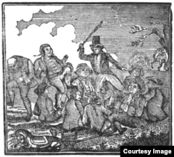 Шыльдбюргеры гэтай мудрай парады ня ведалі ... і таму ладна надзюбаліся. Бо была розная чарка — і кругавая, і медавая, і расхадуха, і падскакуха, а пасьля і паваліха, і пакаціха. А як хапілі аглабельную, дык толькі праз гадзіны тры ачомаліся.