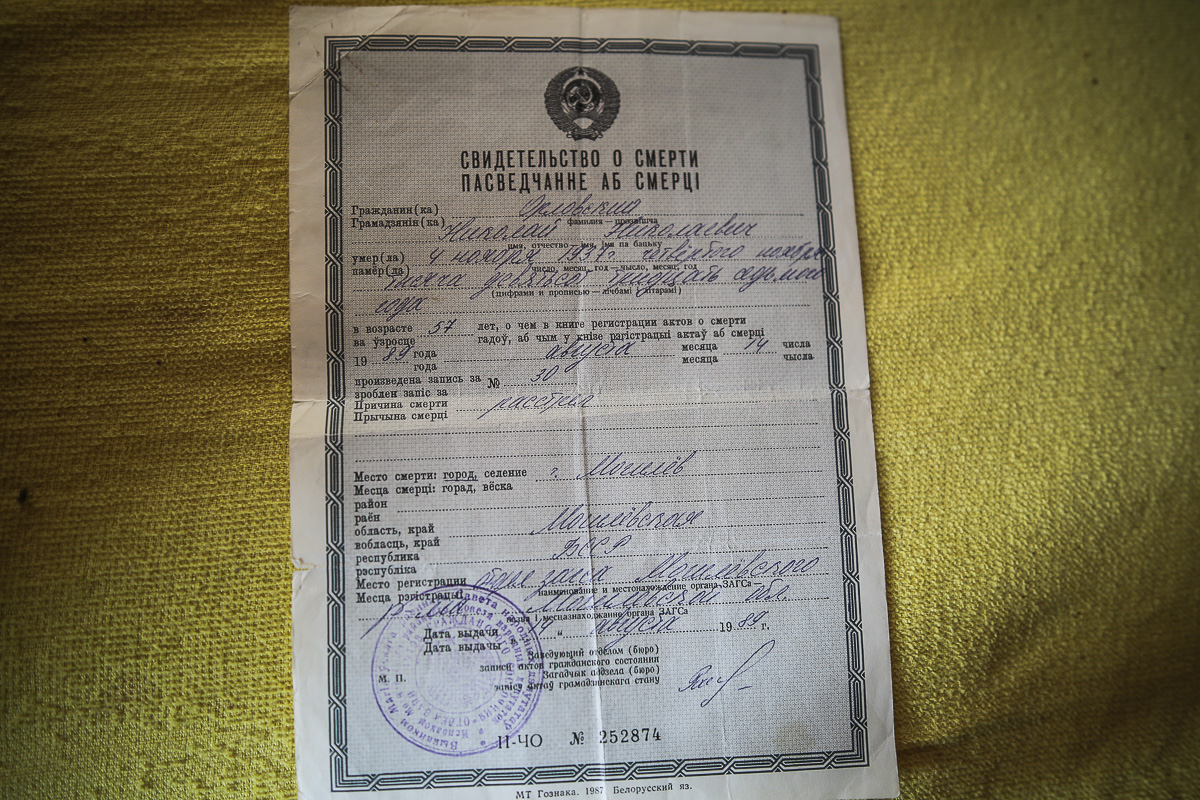 Пасьведчаньне аб сьмерці бацькі Яўгеніі Арлоўскай