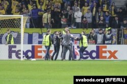 Заўзятара, які выбег на поле «Барысаў-арэны» зь бел-чырвона-белым сьцягам, будуць судзіць за дробнае хуліганства