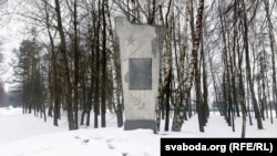 — Гэты помнік паставілі ў сярэдзіне 70-х гадоў. Там спачатку была мармуровая шыльда, дзе было напісана, што помнік пастаўлены ў гонар 1-га кавалерыйскага партызанскага атраду Дзенісенкі. Правісела яна месяцы тры. Абурыліся ўсе. Бо на гэтай тэрыторыі дзейнічала шмат атрадаў. Ён быў ініцыятарам гэтага помніка. Спачатку хацеў яго паставіць у Новым Сяле. Але там былі супраць, бо Новае Сяло спалілі празь Дзенісенку. Яны базаваліся за Нёманам, а туды прыяжджалі вечарамі пакуціць. І ён называў Новае Сяло Масквой. Немцы, маўляў, сюды хадзіць ня будуць. Дык вось, як гэтую шыльду разьбілі, хутка зьявілася іншая, дзе былі пералічаныя ўсе партызанскія злучэньні. А супраць Дзенісенкі народ быў настроены агрэсіўна.