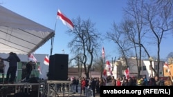 Сотні людзей, музыка, гандаль сувэнірамі, прыўзьняты настрой і паўсюль бел-чырвона-белыя сьцягі.