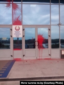 Хто і чаму закідаў фарбай будынак, невядома. Сьледчы камітэт праводзіць праверку.