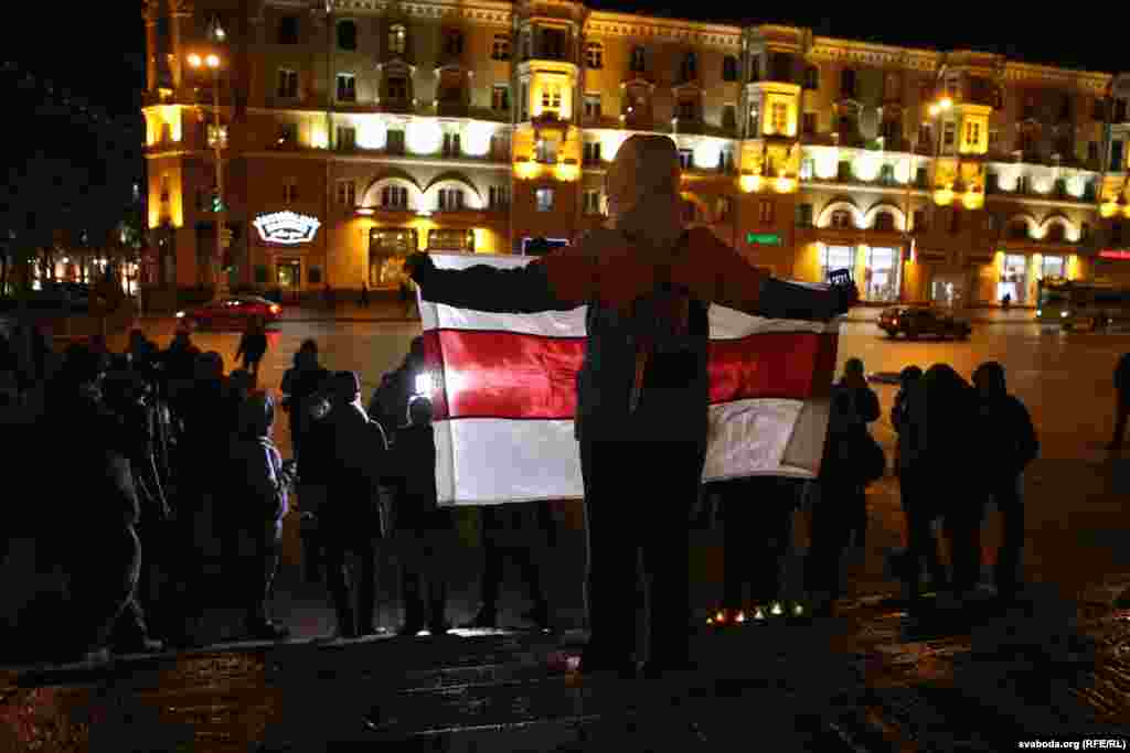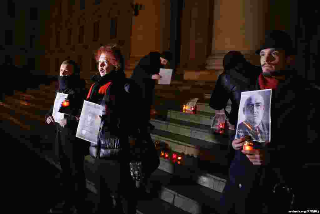 Увечары 29 кастрычніка з ініцыятывы «Маладога фронту» людзі ўшанавалі памяць ахвяраў сталінскіх рэпрэсіяў акцыяй каля будынку КДБ ў Менску.