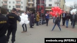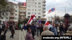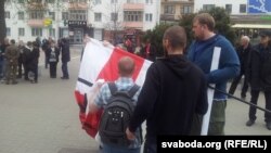 Каля кінатэатру «Кастрычнік» сабралася некалькі дзясяткаў чалавек. Актыввісты «Маладога фронту» Мікалай Дземідзенка, Уладзь Яроменак і Эдуард Лобаў разгарнулі сьцяг сваёй арганізацыі. Прысутнічае сустаршыня БХД Павал Севярынец і праваабаронца Валер Шчукін. Збор людзей перад шэсьцем адбываецца ў прысутнасьці вялікай rолькасьці міліцыянтаў і АМАПаўцаў.