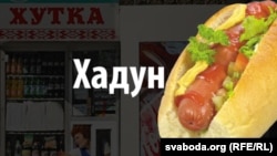У сетцы кіёскаў "Хутка-смачна" перакус пад беларускімі імёнамі – такая палітыка кампаніі. Гэта луста, якой называюць сапраўды лусту хлеба, на якой скрыль сала ці паляндвіцы, карацей, бутэрброд. І гэта хадун – адпаведнік хот-дога. Хадун у Менску збольшага ведаюць.