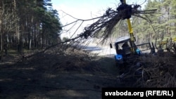 «Ніякага аўралу няма, плянавае прыбіраньне лесу. Высякаем хмызьняк, але ялінкі пакідаем, думаем пра тое, які лес будзе потым», — патлумачыў лясьнічы.