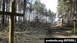 «Мы тут прыбіраем, зносім хмызьняк да дарог, але ў самім лесе на трактары ня езьдзім, тут забаронена. І крыжоў ня валім, а якія паламаныя, акуратна складаем, каб потым іх аднавілі. Тут у суботу прайшоў вялікі суботнік, чыноўнікі з нашага міністэрства прыяжджалі, гэта яны насеклі хмызьняку, а мы цяпер яго цягаем. А будуць тут які парк рабіць ці яшчэ што, нам нічога не сказалі», — распавёў працаўнік пра сваю працу ў Курапатах.