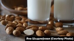 Адціснутыя арэшкі таксама ўжывалі ў ежу — з іх атрымліваліся смачныя міндальныя вяршкі. Цяпер міндальнае малачко выкарыстоўваецца як адзін з інгрэдыентаў прахаладжальных кактэйляў. З сокам ягад робяць выдатны фруктовы аршад. Менавіта з міндальнага малачка робяць халодны дэсэрт — бланманжэ, надзвычай смачны ў сьпёку.