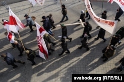 Транспаранты: «Прывід камунізму — квартырант у Драздах», «Камуністы на…зад!», «День 7 ноября — мёртвый день календаря»