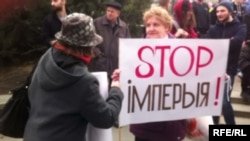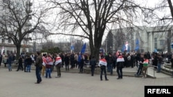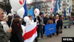 Удзельнікаў ужо больш за сотню. Апроч бел-чырвона-белых сьцягоў, ёсьць сьцягі Эўразьвязу, Украіны і прафсаюзу РЭП. Сярод расьцяжак – «Беларусь – у Эўропу», «Мы – эўрапейцы», «Крым – Украіне, шчасьце – краіне». Удзельнікі скандуюць «Жыве Беларусь».