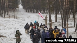 У нядзелю раніцай актывістка аргкамітэта па стварэньню партыі «Беларуская хрысьціянская дэмакратыя» Валерыя Чарнаморцава для ўсіх ахвотных правяла экскурсію ва ўрочышча Курапаты. Нягледзячы на лютаўскую завіруху, на экскурсію прыйшло прыкладна паўсотні чалавек, некаторыя былі зь дзецьмі. Амаль палова трапіла ў Курапаты ўпершыню.