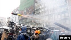 Паводле зьвестак сайту Спротив, на даху Ўкраінскага Дому знаходзяцца снайперы, якія страляюць у пратэстоўцаў.Генеральная пракуратура падцвердзіла сьмерць дзьвух пратэстоўцаў у выніку раненьняў ад пальнае зброі, МУС запэўняе, што яе байцы не карыстаюцца агнястрэльнай зброяй.
