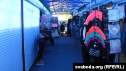 Прадпрымальніца Тацяна гандлюе на рынку рэчамі для жаночага гардэробу. Кажа, што прыйшлося набыць і беларускія тавары, каб мець дакумэнты і хоць крыху аднавіць гандаль: