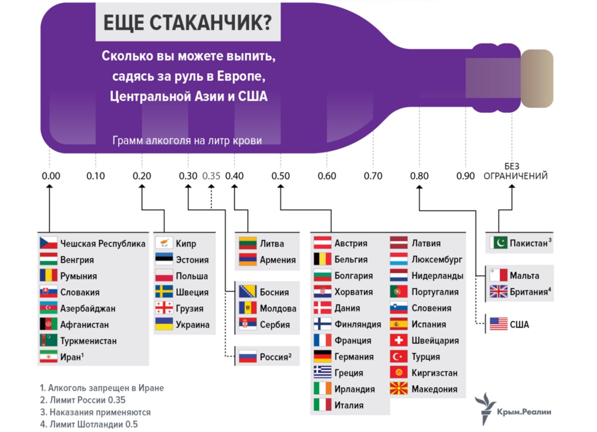 Колькі вы можаце выпіць, сядаючы за руль ва Ўкраіне, Расеі, Эўропе, ЗША і іншых краінах?