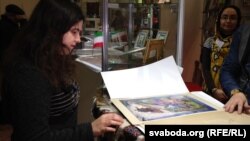 Захопленая беларускай гаворкай паэтка Анхэля адразу вырашыла, што на выставе будзе шукаць дзіцячыя кніжкі па-беларуску — падарунак сваёй маленькай пляменьніцы Лізе.