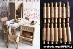 Калі казаць пра кухню, немагчыма не згадаць сямейную майстэрню «Бусел», у якой з дрэва ствараюцца драбнюткія дэталі лялечнага інтэрʼеру, але часам зьяўляюцца цікавыя штукі і для простых сьмяротных. Напрыклад, вось гэтыя вешакі ў выглядзе скалкі змогуць аздобіць кухню любой гаспадыні, а калі на яго павесіць ручнік з арнамэнтам — і пагатоў. Каштуюць такія вешакі разам зь неабходнымі шпунцікамі для мантажу да 15 рублёў.