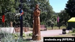 Тут жа, на падворку культурніцкага цэнтру ў Задзьвіньні сёньня прэзэнтавалі публіцы драўляную скульптуру княгіні Вольгі — заснавальніцы Віцебска, калі верыць не пацьверджанай навукоўцамі легендзе.