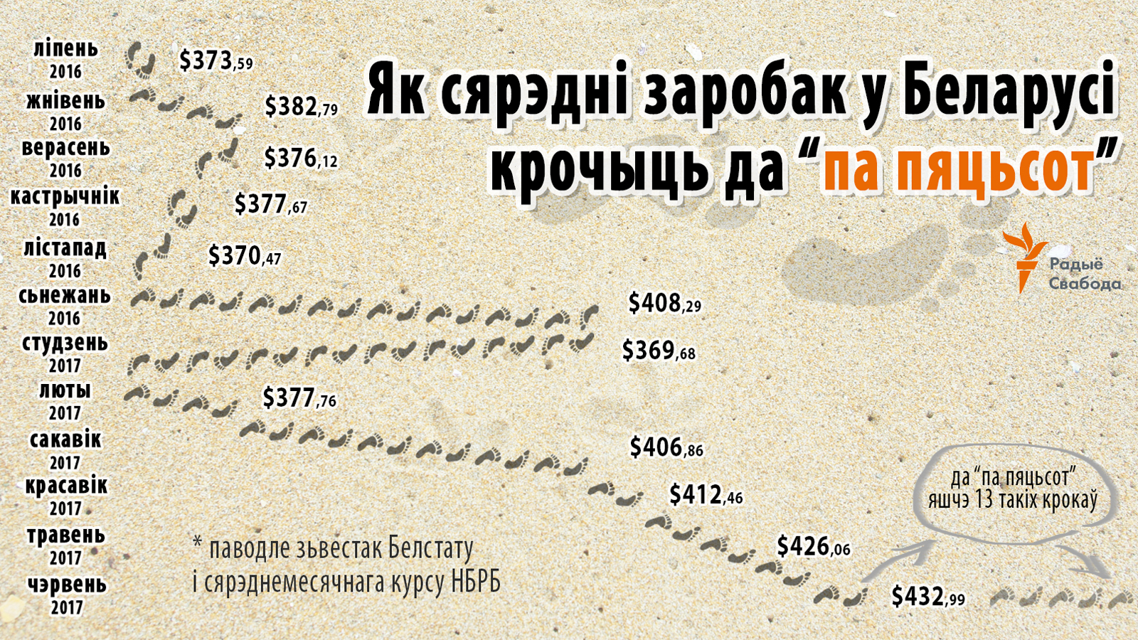 Як сярэдні заробак у Беларусі крочыць да «па пяцьсот». Адной карцінкай