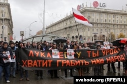 Першы «Марш абураных беларусаў», што быў у Менску 17 лютага, за 100 сэкундаў