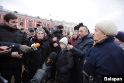 «Я хачу, каб мой муж жыў са мной. А не ў іншай краіне на заробках. Мне прыслалі «ліст шчасьця», таму што я сяджу дома з двума дзецьмі. Мая мама працуе на пэнсіі, атрымлівае 200 рублёў. Мы сядзім і чакаем мужчын, гадаем, ці прывязуць грошы», — кажа жанчына зь дзіцём.