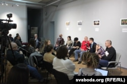 Разам з адкрыцьцём выставы адбылася дыскусія на тэму свабоды слова і працы журналістаў у акупаваным Крыме.