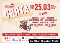 У афішы мітынгу-канцэрту гурты Akute, Dzieciuki, «Мутнаевока» і «Разьбітае сэрца пацана», сьпевакі Ігар Варашкевіч, Кася Камоцкая, Пятро Клюеў і Юры Стыльскі, музычная праграма «Сьпеўнага сходу» і выступ актораў «Свабоднага тэатру», бліжэй да сьвята будуць анансаваныя таксама іншыя выступоўцы. Дачка Лявона Вольскага Адэля Вольская засьпявае песьні бацькі.