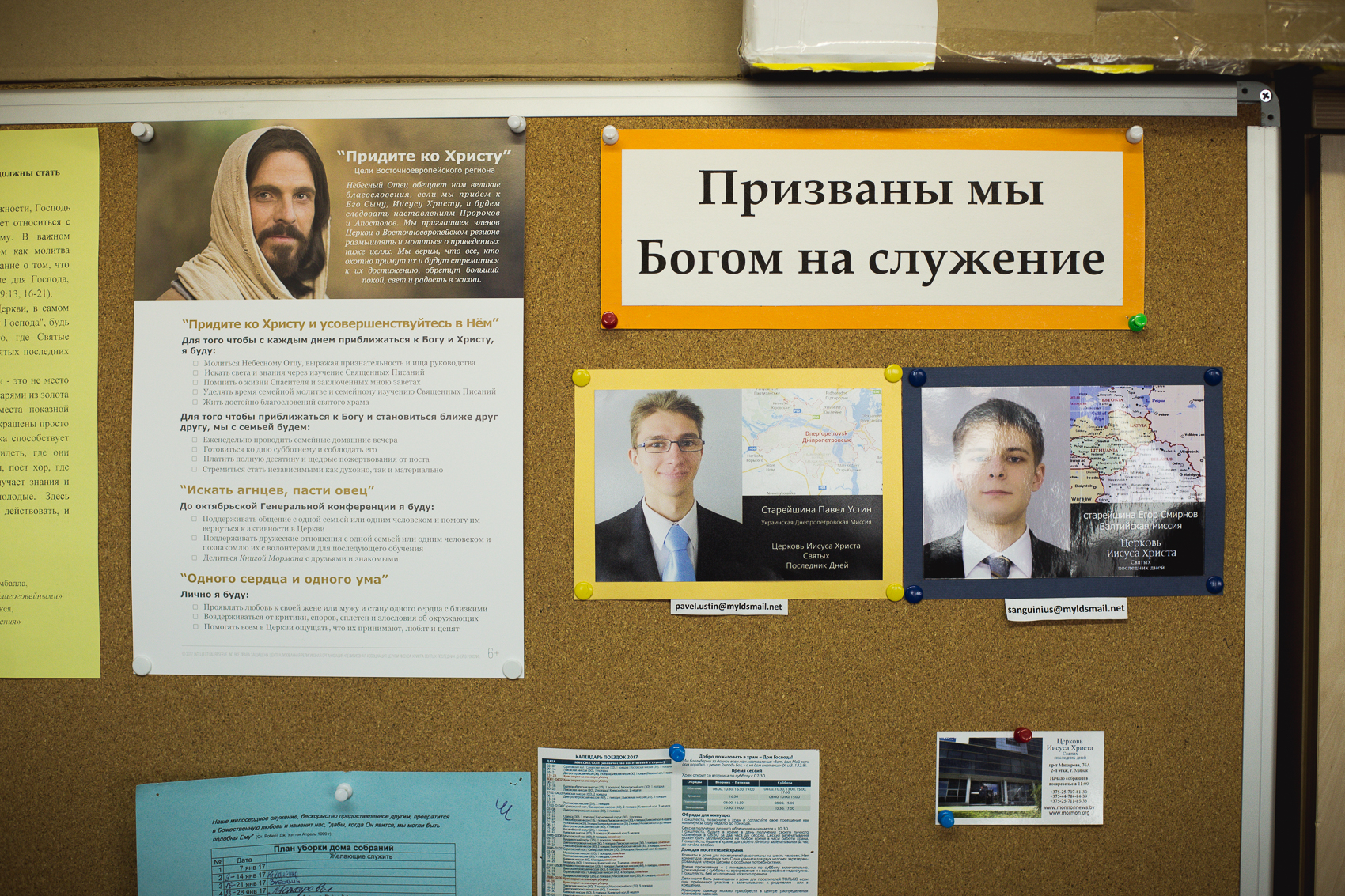 Маленькая Саша размалёўвае Хрыста каляровымі алоўкамі. Яе тата — брат Ігар — дапамагае адной рукой. Яна — у ружовай сукенцы, ён — у белай кашулі з гальштукам, як усе мужчыны ў царкве. Мы на нядзельнай службе мармонаў у арандаванай прасторнай залі бізнэс-цэнтру на праспэкце Машэрава. Штонядзелі аб 11 гадзіне сюды прыходзяць каля ста вернікаў.