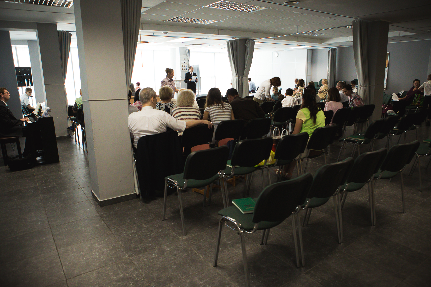 Пасьля 10-хвіліннага перапынку — другая частка службы: Нядзельная школа. Вялікую залю дзеляць шторамі на сэкцыі. У кожнай — свая тэма. На перапынку да нас зь Лізаветай падышлі двое хлопцаў і дзяўчына. Спыталіся, хто мы, як знайшлі іх царкву, ды запрасілі ў сэкцыю да брата Ільлі. Ён у царкве зь дзяцінства й наведвае яе разам з усёй сям’ёй.