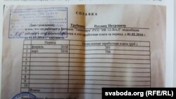 Паводле гэтага дакумэнту, за люты 2016 году, працуючы рабочым у цэху па вырабе тэнтаў, Руслан Трубкін атрымаў 201 недэнамінаваны рубель, што менш за 1 амэрыканскі цэнт. За наступны месяц вязень атрымаў 706 недэнамінаваных рублёў (гэта 3,5 цэнта).