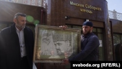 Прадстаўнікі дыяспары прыйшлі з падарункам — карцінай з выявай Ахмата Кадырава, бацькі і папярэдніка Рамзана Кадырава. Аднак празь нейкі час яны даведаліся, што наведваньне Кадыравым Менскай саборнай мячэці не плянуецца.