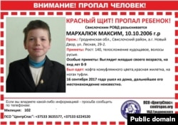 10-гадовага Максіма Мархалюка зь вёскі Новы Двор у Сьвіслацкім раёне шукаюць ужо дзясяты дзень. Як сказалі Свабодзе ў Навадворскім сельсавеце, увечары 16 верасьня Максім катаўся па вуліцы на ровары побач са сваёй хатай, а потым нібыта накіраваўся ў лес.