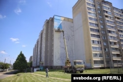 Дом размалёўваюць два расейскія графіцісты Артур Кашак і Ільля Сакалоў. Яны кажуць, што выконваюць замову маскоўскай кампаніі «Новотек Арт», зь якой маюць дамову аб супрацоўніцтве. Паводле графіцістаў, праект быў распрацаваны і зацьверджаны спэцыялістамі гэтай кампаніі. Хто заказчык і колькі праект каштуе, масквічы сказаць не змаглі.