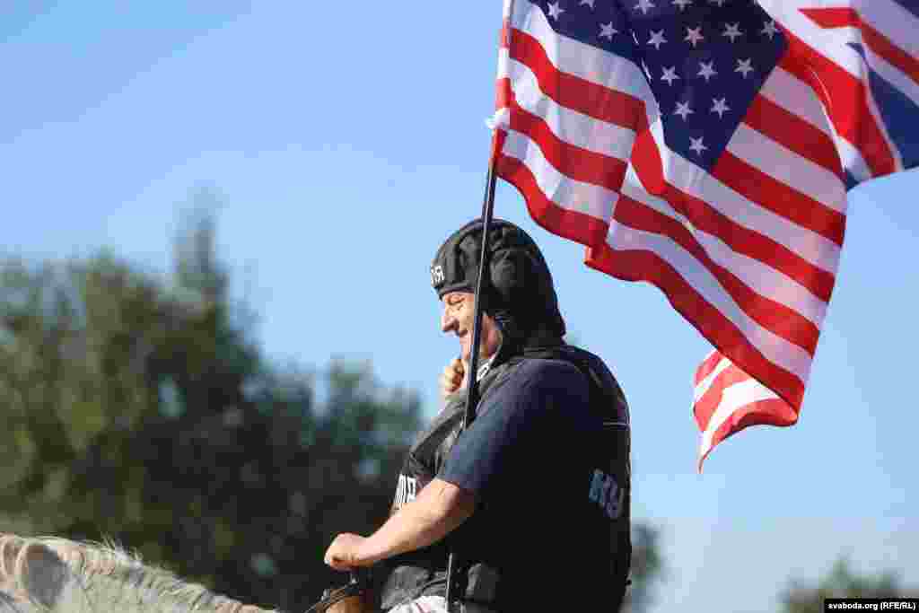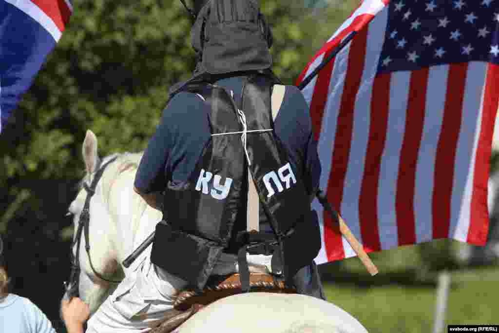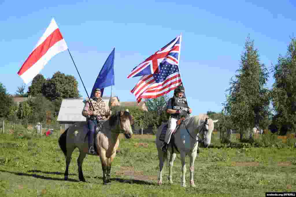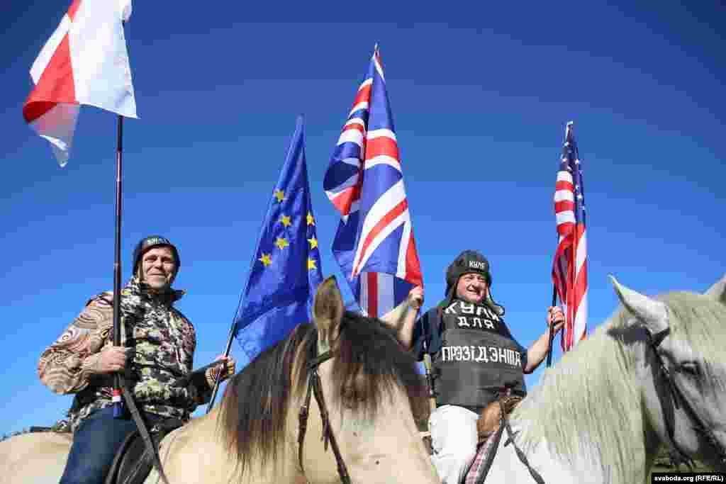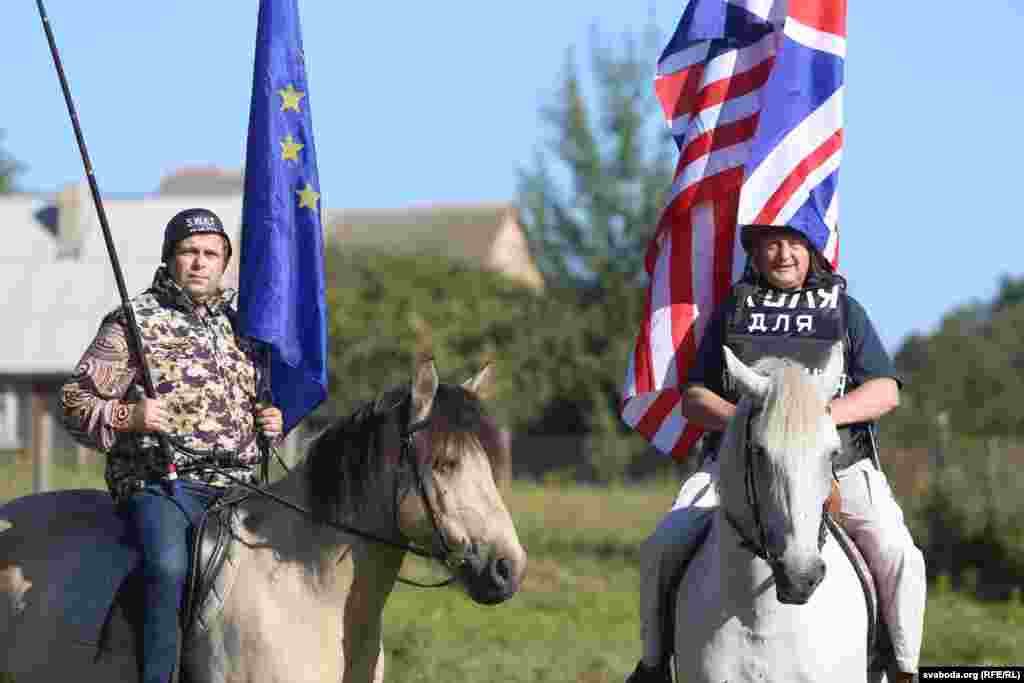 Падгол і Таўстыка зьявіліся перад журналістамі конна, зь бел-чырвона-белым сьцягам, а таксама сьцягамі Эўразьвязу, ЗША і Вялікай Брытаніі.